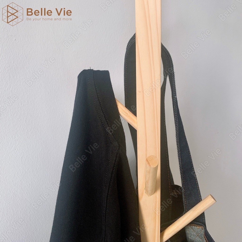 Cây Treo Quần Áo Đứng Gỗ Thông BELLEVIE Móc Quần Áo Gỗ Thiết Kế Lắp Ráp Hiện Đại