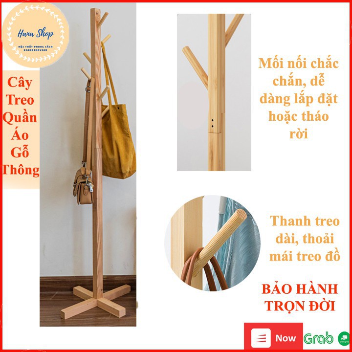 Cây Treo Quần Áo Đứng Phong Cách Scandavia Bắc Âu - Cây Treo Quần Áo Gỗ Thông Newzealand Hana Shop - Bh 12 Tháng