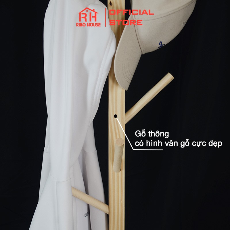 Cây treo quần áo gỗ RIBO HOUSE Standing Hanger kệ sào treo quần áo túi xách loại đứng RIBO136