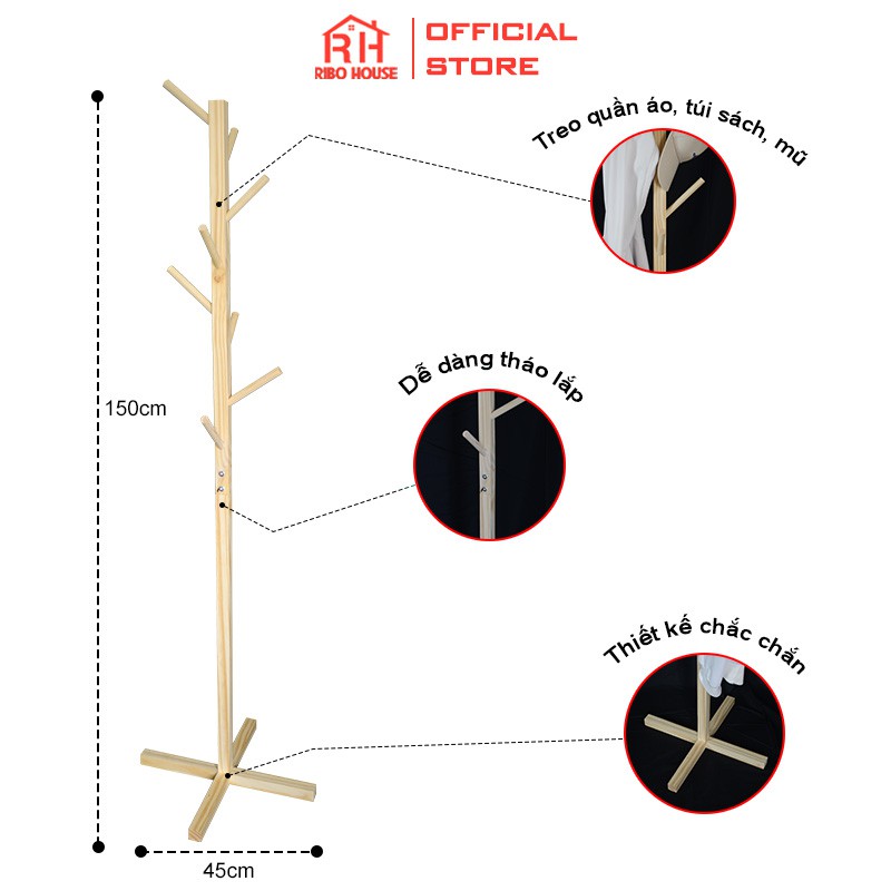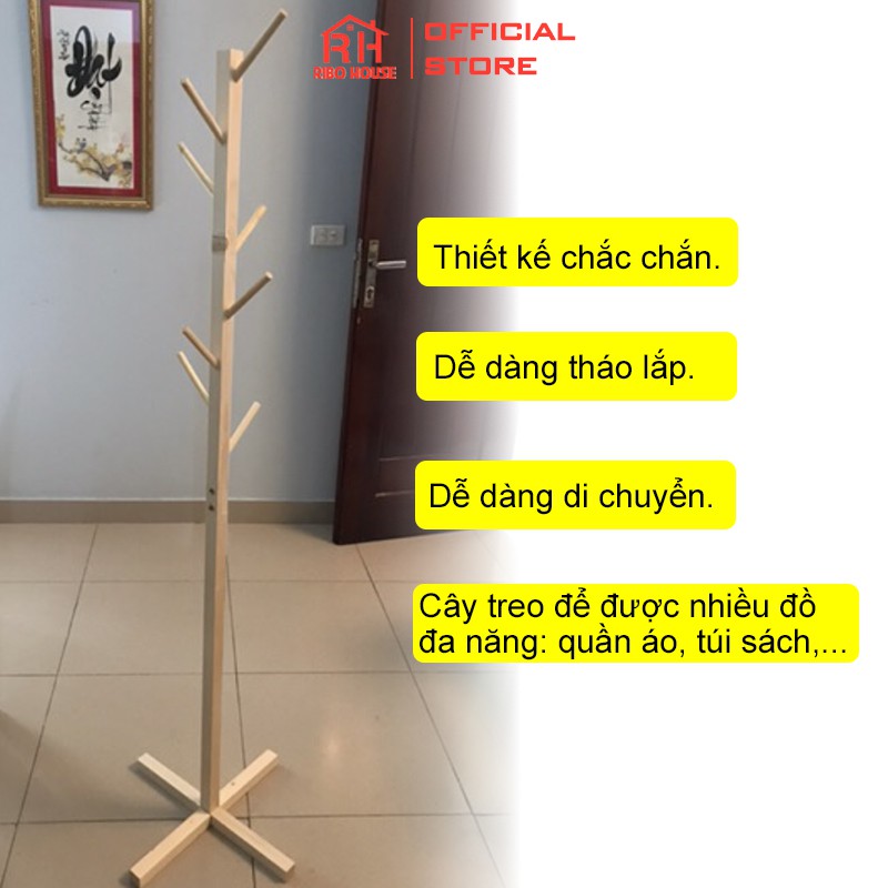 Giới thiệu Cây treo quần áo gỗ RIBO HOUSE Standing Hanger kệ sào treo quần áo túi xách loại đứng RIBO136