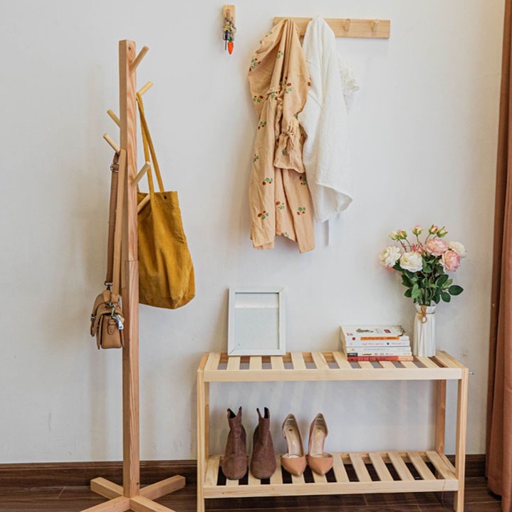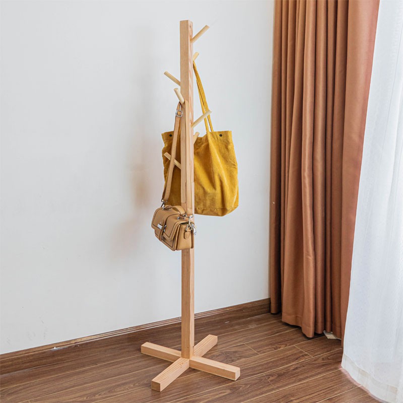 - Cây treo quần áo dáng đứng gỗ thông giữ nguyên màu sắc của gộ, không sơn màu. Vì vậy với những khách hàng muốn trang trí không gian theo phong cách vintage cũng vô cùng phù hợp.