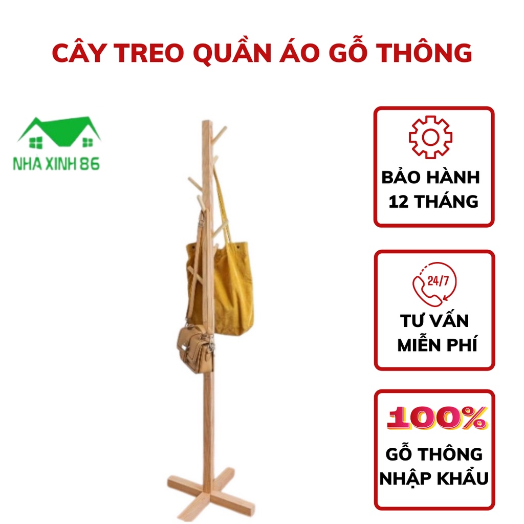 Cây treo quần áo gỗ thông cao cấp, siêu chắc chắn, đã qua xử lý chống mốc l Cây treo đồ bằng gỗ, chịu lực cao