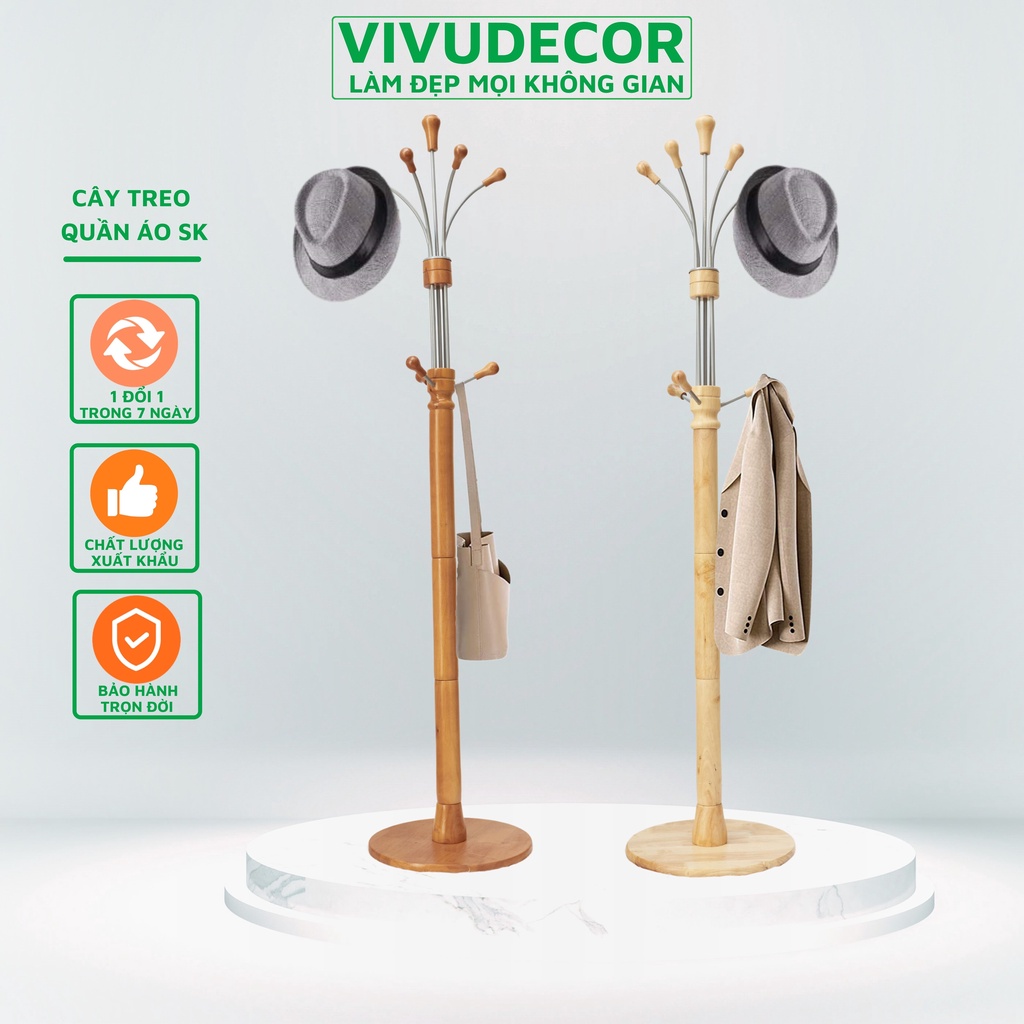 Cây Treo Quần Áo Vivudecor 100% Gỗ Tự Nhiên, Cây Treo đồ SK Nhánh Nhôm Lắp Ráp Xuất Khẩu Hàn Quốc.