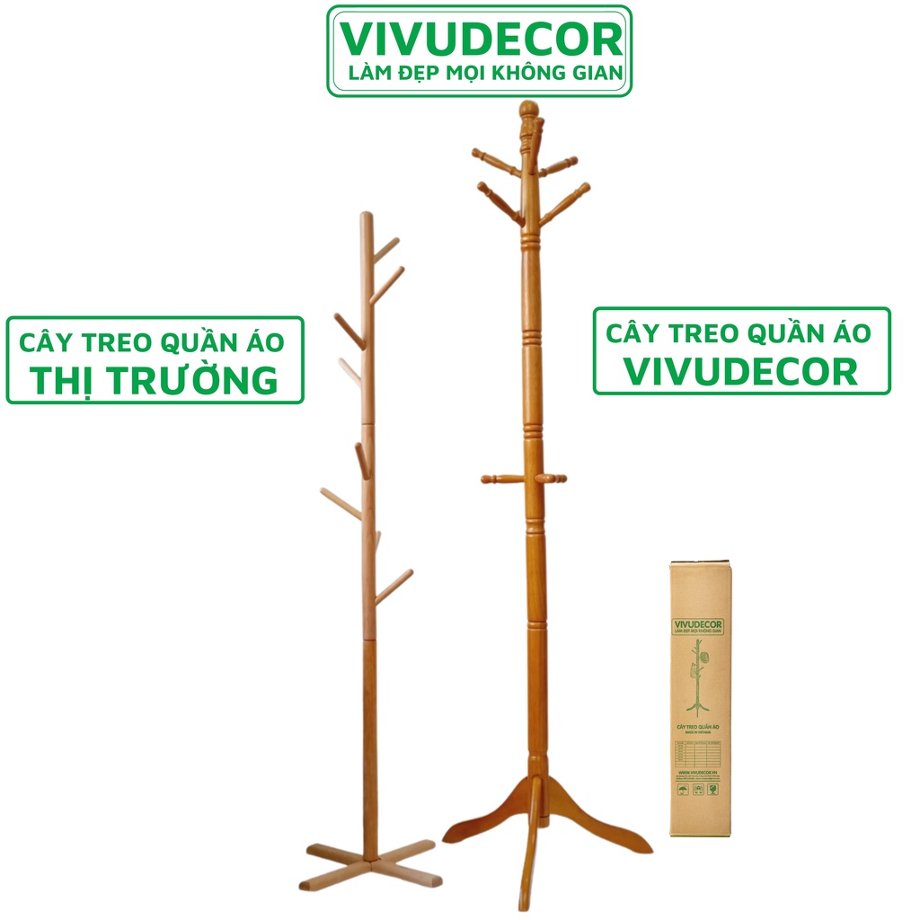 Cây Treo Quần Áo Vivudecor, cây treo đồ 100% bằng gỗ tự nhiên.1.Mô tả sản phẩm Cây treo quần áo Vivudecor: