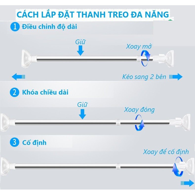 Lưu ý: Thanh treo càng kéo dài ra thì trọng tải chịu lực càng kém. Ví dụ: khoảng cách cần lắp thanh treo là 100cm, quý khách nên chọn loại 90-160cm thay vì 70-120cm