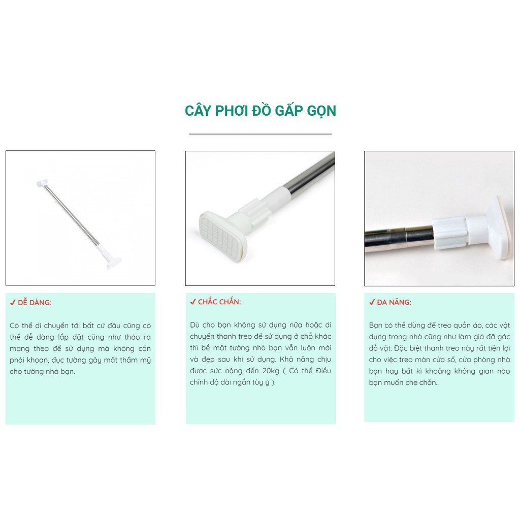 Nhà cửa & Đời sống > Dụng cụ chăm sóc nhà cửa > Dây phơi & giá phơi quần áo || Thanh treo rèm cửa, thanh treo quần áo không cần khoan tườngCòn hàng