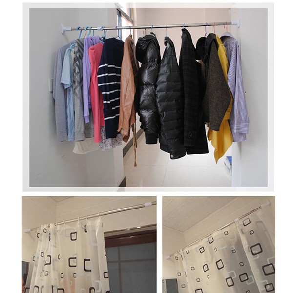 – Thanh treo rèm không cần khoan được làm từ inox, không sợ gỉ, có khả năng chịu lực cao, nhẹ, bền, dễ dàng lắp đặt.