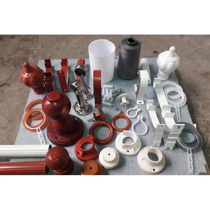 Giới thiệu Thanh treo rèm Loại 1 đầy đủ phụ kiện, thanh rèm cửa gồm pát đỡ, đầu chụp, cút cột, ốc vít