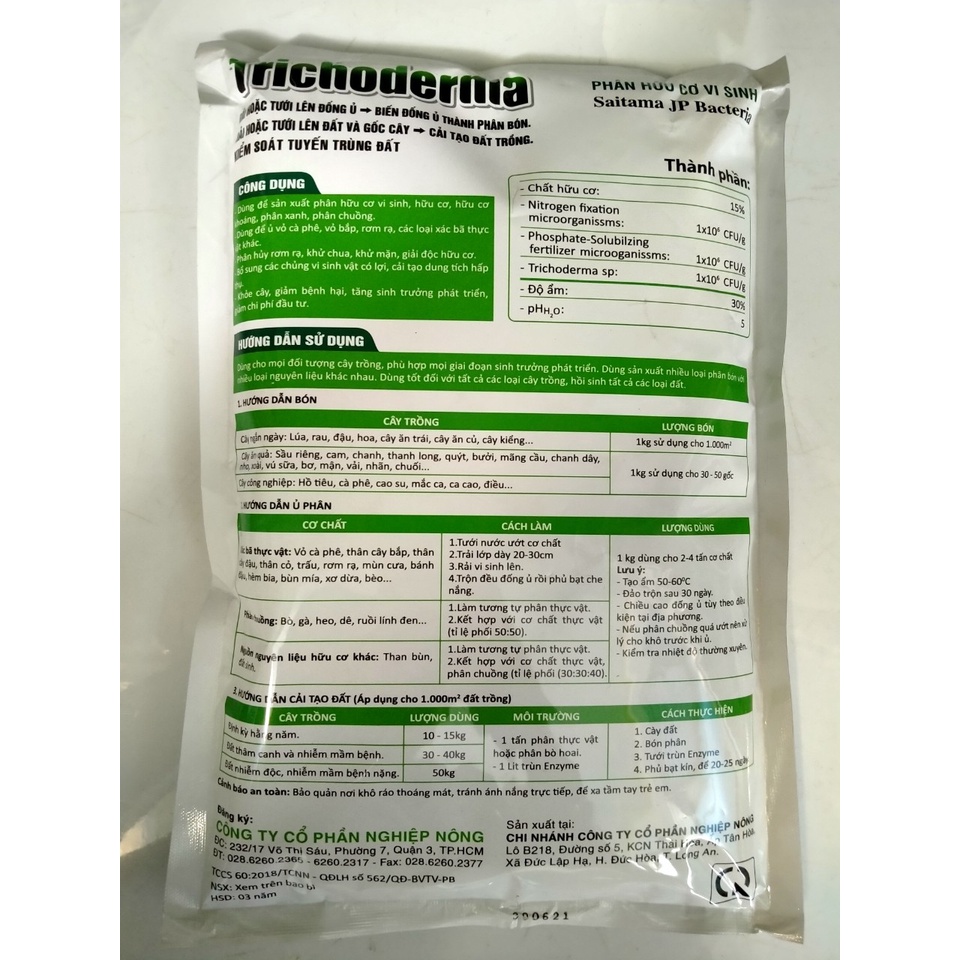 Nấm đối kháng TRICHODERMA Ủ phân và xử lý đất trồng, cải tạo đất bịch 1kg