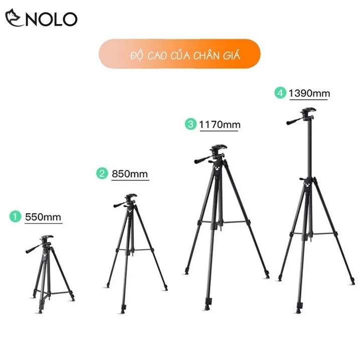 Tripod có thể thu gọn và kéo dài ra, chiều cao tối đa mà tripod đạt được là 139cm.
