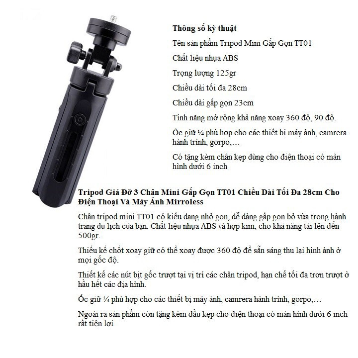 Tên sản phẩm Tripod Mini Gấp Gọn TT01