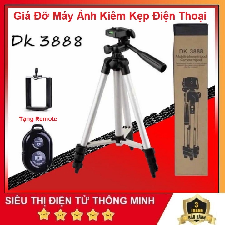 Điện Thoại & Phụ Kiện > Phụ kiện > Phụ kiện selfie > Gậy selfie || Tripod Ba Chân DK-3888, Tặng Remote Kết Nối Bluetooth - Dùng Cho Máy Ảnh Và ĐT - Tripod Bằng Nhôm 1M - Bảo Hành 6 ThángCòn hàng