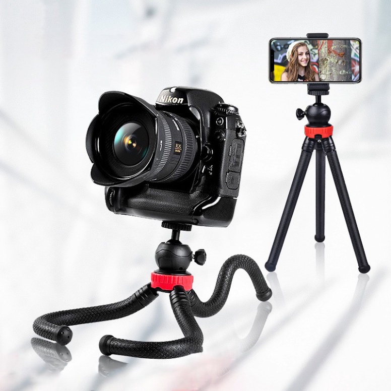 🍀Với chất liệu là nhựa dẻo, trên thân có nhiều đường gân như những xúc tu bạch tuộc, loại tripod này có độ bám tốt hơn hẳn so với tripod kiểu khớp nối hay vỏ bằng xốp.