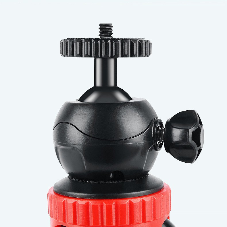 🍀Đầu tripod thiết kế dạng hình cầu có khóa chốt, có khả năng xoay lật 360 độ để người dùng có thể thỏa mái tạo ra nhiều góc chụp hơn. Kết nối của nó là chuẩn quốc tế ¼ inch, dễ dàng tương thích với các thiết bị máy ảnh, kẹp điện thoại, đèn quay phim, micro…