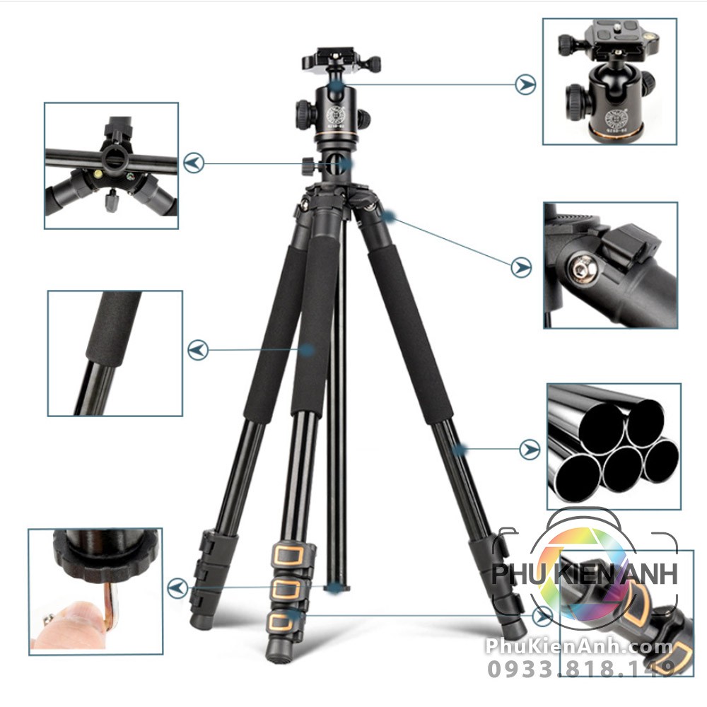 Tripod Beike Q298H có trục trượt ngang 55cm để chụp sản phẩm, quay phim đa dụng