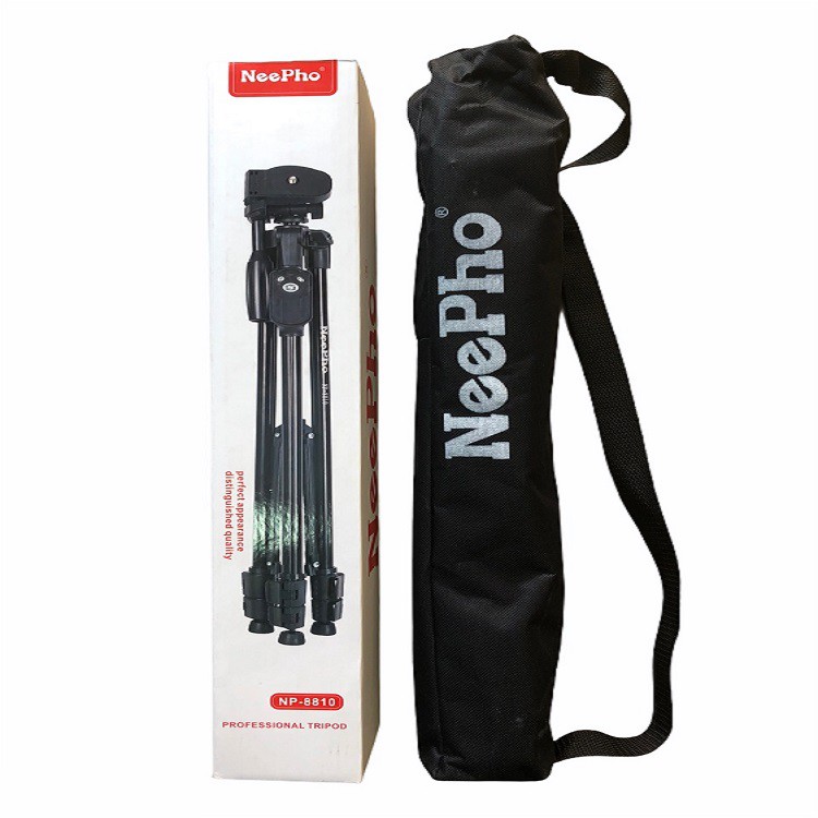 Giới thiệu Tripod chân máy ảnh NeePho NP-8810, khung nhôm cao cấp, cao 1.5m chịu tải 3kg, có túi đeo. Kèm kẹp điện thoại + Remote