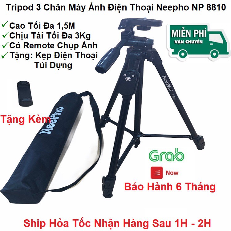 Tripod chân máy ảnh NeePho NP-8810, khung nhôm cao cấp, cao 1.5m chịu tải 3kg, có túi đeo. Kèm kẹp điện thoại + Remote