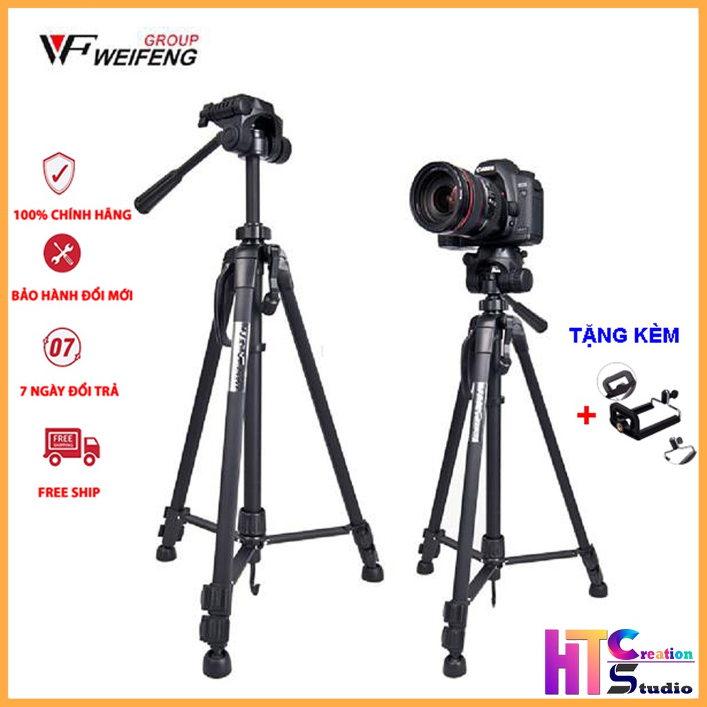 Tripod chân máy ảnh Weifeng WT-3520, khung nhôm cao cấp, cao 1.4m chịu tải 3kg, có túi đeo. Tặng kèm kẹp điện thoại