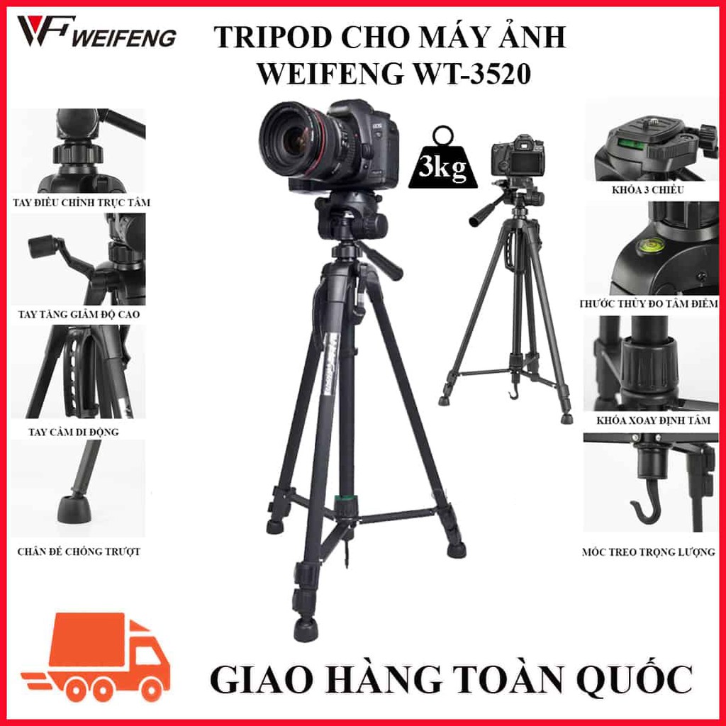Cameras & Flycam > Phụ kiện máy ảnh > Chân máy ảnh || Tripod chân máy ảnh Weifeng WT-3520, khung nhôm cao cấp, cao 1.4m chịu tải 3kg, có túi đeo. Tặng kèm kẹp điện thoạiSo sánh giá ×