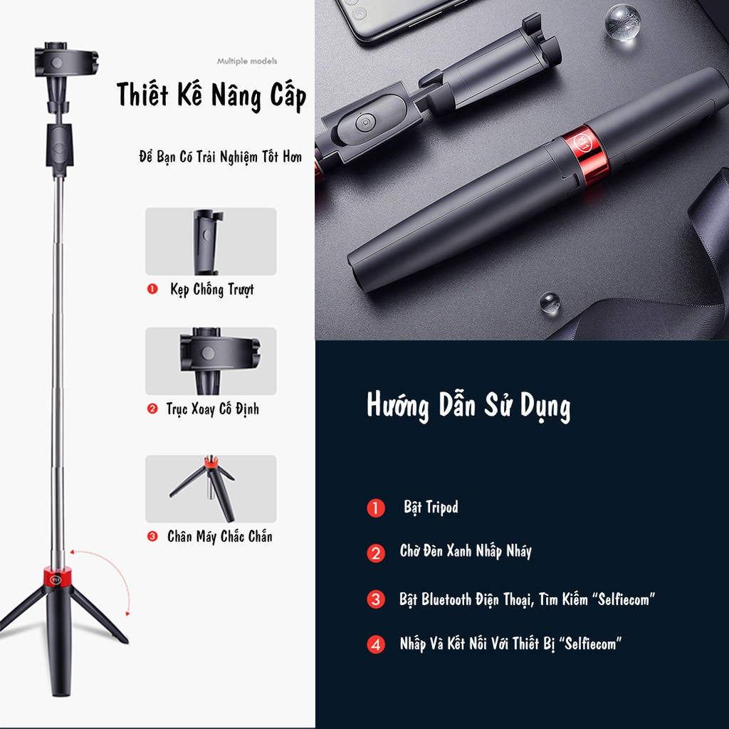 Gậy Tự Sướng Bluetooth| Tripod Gậy Selfie Chụp Hình Chống Rung Cao Cấp Thích Hợp Mọi Loại Máy |Tripod đa năng cao cấp, chụp hình tạo dáng tùy thích - BH 12 tháng