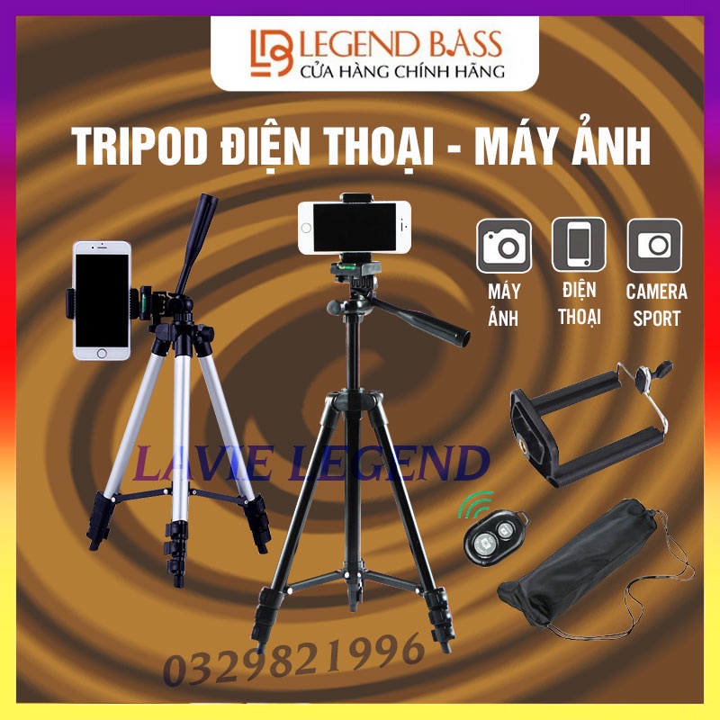 Tripod điện thoại chân máy ảnh kèm kẹp điện thoại 3 chân,điều khiển remote bluetooth, giá đỡ điện thoại livestream