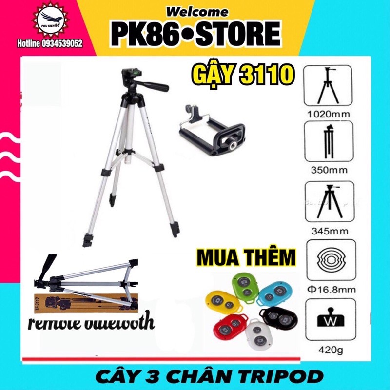 Tripod điện thoại , giá đỡ 3 chân máy ảnh TF 3110, kết hợp remote bluetoothGiá đỡ điện thoại, dùng tiện ích cho việc thao tác chụp ảnh, selfie hiệu quả hơn
