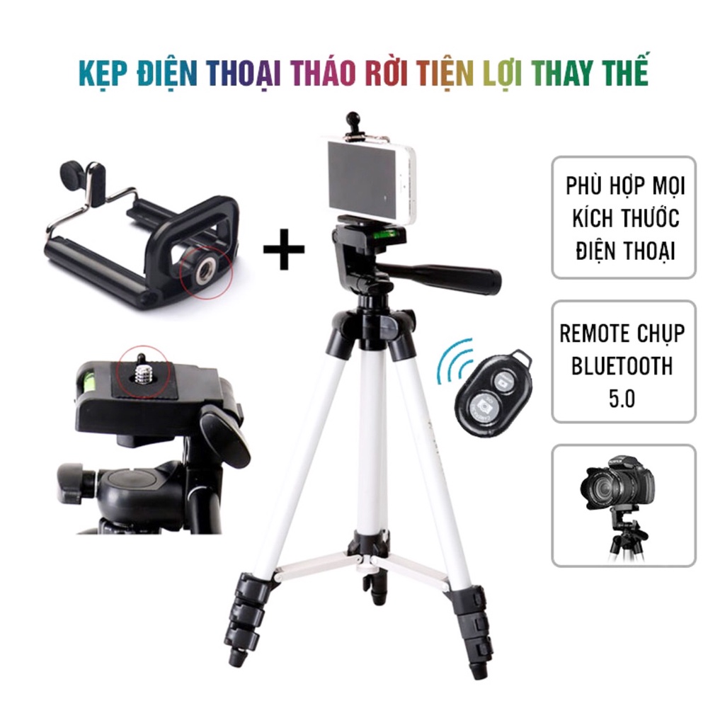 Tripod điện thoại chân máy ảnh kèm kẹp điện thoại, điều khiển remote bluetooth, giá đỡ điện thoại livestream, facetime, chân đèn chiếu sáng quay tiktok