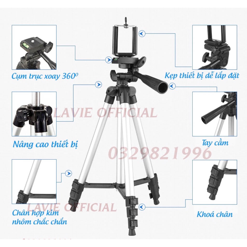 Giới thiệu Tripod Điện Thoại Máy Ảnh, Giá đỡ Điện Thoại 3 Chân Để Chụp Hình, Livestream, Quay Phim Điều Chỉnh Xoay 360 Độ Cao 1m5 H