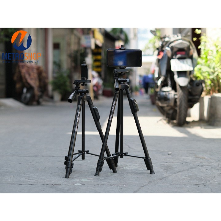 Chân đế chụp hình điện thoại Yunteng VCT 5208RM. Chân với thiết kế nhỏ gọn cứng cáp rất tiện dùng khi mang đi chơi, du lịch. chiếc Tripod này được làm từ chất liệu hợp kim nhôm, kích thước thu gọn chân là 43cm và kéo dài tối đa lên tới 1.25M.