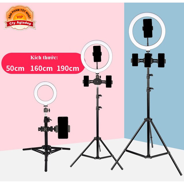 Tripod gậy chụp ảnh quay phim Livestream siêu xịn LED 3 màu, 4 kẹp điện thoại, cao 190cm (3 CHÂN)