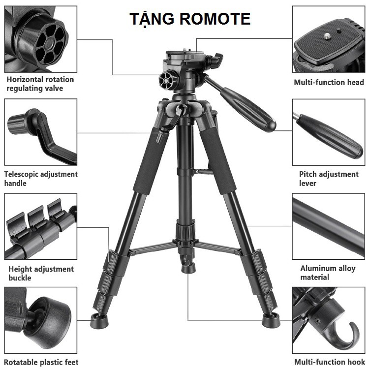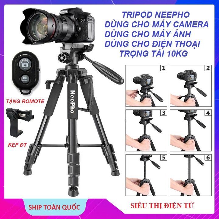 Giới thiệu Tripod Máy Camera, Chân Máy Ảnh Điện Thoại Chuyên Nghiệp, Chính Hãng NeePho -8850 - Tặng Romote Chịu Tải 10KG