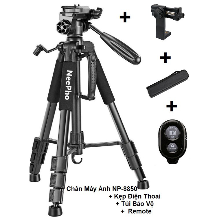 Chân Giá Đỡ Dùng Cho Máy Camera, Máy Ảnh, Điện Thoại Chuyên Nghiệp, Tripods Chính Hãng NeePho - 8850Shop Có Tặng Khách Hàng 1 Romote Siêu Bền Thay Được Pin