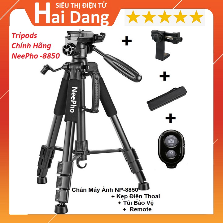 Chân Giá Đỡ Dùng Cho Máy Camera, Máy Ảnh, Điện Thoại Chuyên Nghiệp, Tripods Chính Hãng NeePho - 8850Shop Có Tặng Khách Hàng 1 Romote Siêu Bền Thay Được Pin