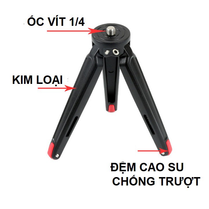 - Tripod có đệm cao su ở dưới chân tăng ma sát với nền đất