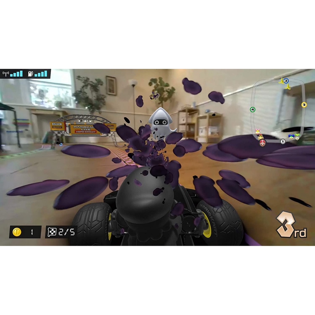Máy Nintendo Switch của bạn sẽ biến thành một chiếc điều khiển từ xa, lái xe Mario Kart vòng vòng xung quanh. Đồng thời, màn hình máy (hoặc TV) hiển thị hình ảnh môi trường xung quanh đang tương tác với xe nhờ hệ thống camera có gắn trên mỗi xe. Bạn sẽ được thưởng thức góc nhìn ngay phía sau ghế tài xế đầy sôi động.