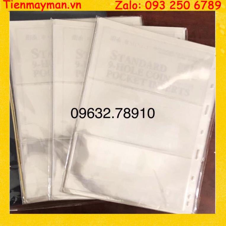 COMBO 10 Phơi đựng tiền nhựa MINGT loại 3 ngăn - phơi trongPhơi đựng tiền giấy PCCB 9 lỗ có thể gắn vừa Album 4 còng PCCB và các loại album 3 còng khác, với kích thước 21.5 x 28cm do hãng chuyên sản xuất dụng cụ sưu tầm tiền PCCB, Đài Loan sản xuất, chất lượng được giới sưu tầm đánh giá cao, hơn hẵn các loại phơi được sản xuất tại Việt Nam. Shop Quatangsuutam.com cung cấp các loại phơi đựng tiền giấy 1 ngăn, 2 ngăn, 3 ngăn và 4 ngăn để phù hợp với kích thước của từng loại tiền sưu tầm.