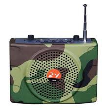 Sản phẩm đa năng, kích thước nhỏ gọn, sơn rằn ri kiểu quân đội, máy sử dụng pin sạc được tích hợp bên trong, âm thanh cực lớn, max công suất 25W, có thể phục vụ cho 60 học viên cùng một lúc.