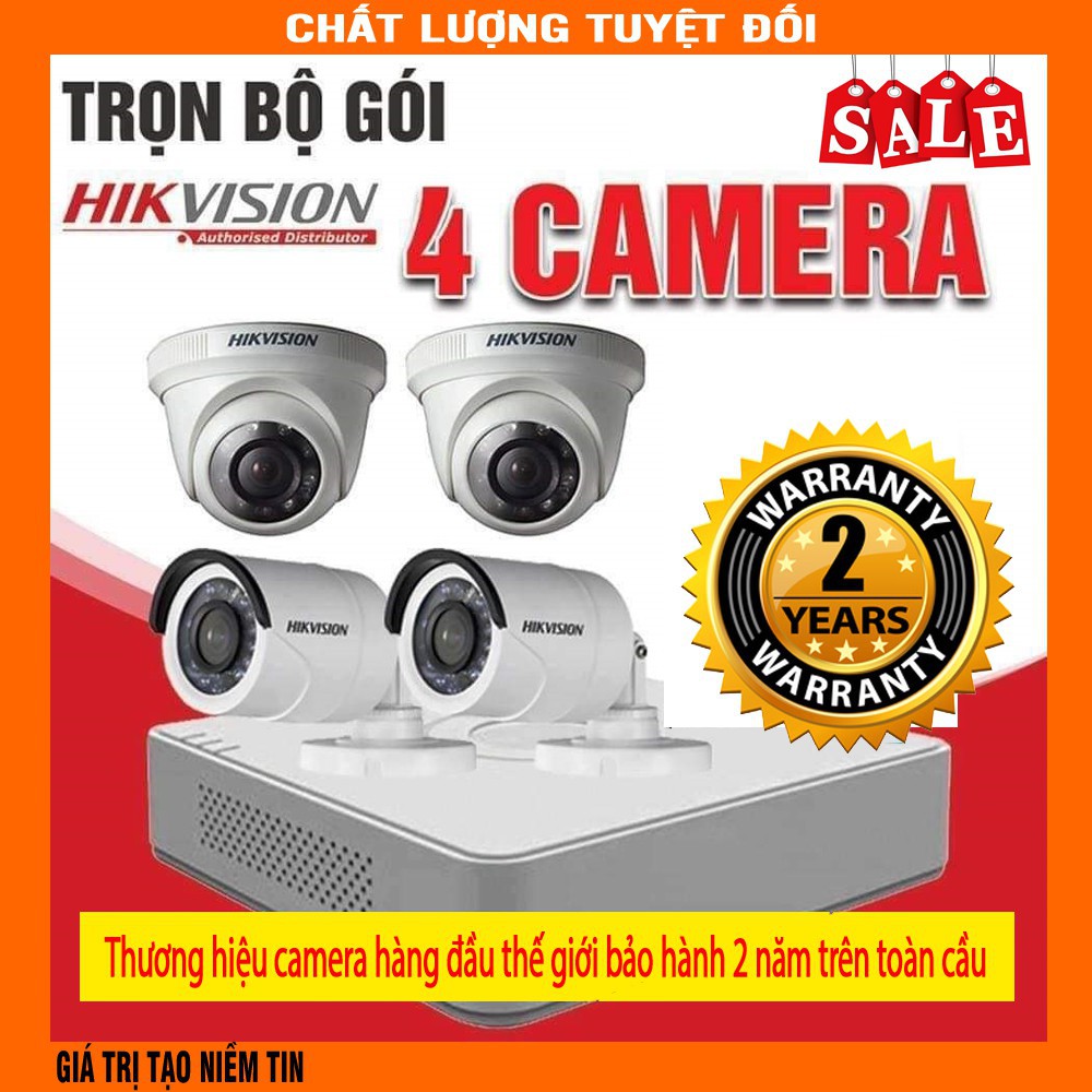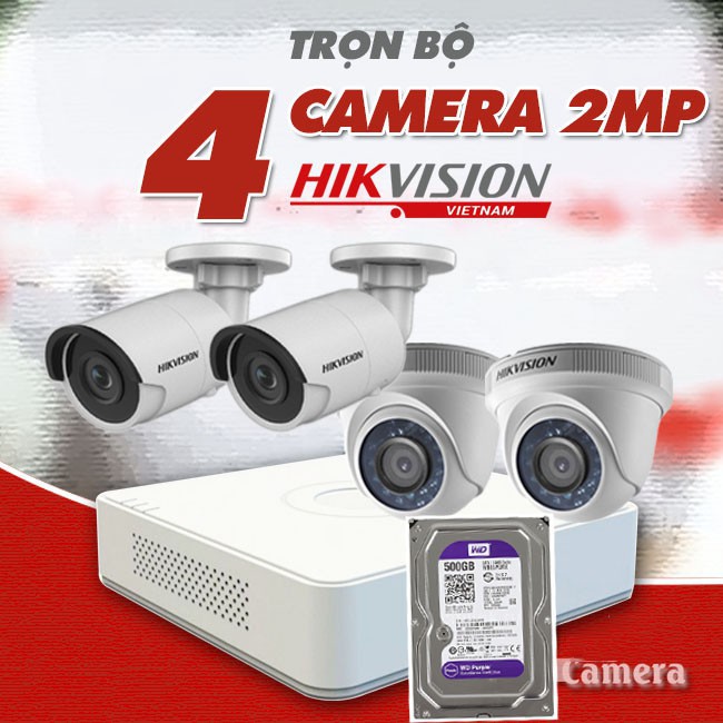 Trọn Bộ 4 Camera Quan Sát Hikvision 2.0 megapixel Full HD 1080P kèm HDD 500G và toàn bộ phụ kiện lắp đặt Khuyễn mãi 4 sợi dây 20 mét dây liền nguồn được đúc sẵn 2 đầuHIKVISION là 1 trong những nhà sản xuất hàng đầu thế giới về các sản phẩm giám sát hình ảnh và những biện pháp. Được thành lập vào năm 2001, hiện tại Hikvision là đơn vị thế giới với hơn 20.000 nhân viên – trong ấy với 9.000 kỹ sư Nghiên cứu & phát triển (R&D). có đội R&D to nhất trong ngành nghề công nghiệp an ninh mang 621 đăng ký sáng chế và 259 bản quyền phần mềm giúp doanh nghiệp có khả năng đổi mới liên tục. Sản phẩm của đơn vị với chất lượng cao, đạt những tiêu chuẩn quốc tế: ISO, CE, CCC, UL, FCC, RoHS… những sản phẩm này đã được dùng tại hơn 100 quốc gia.