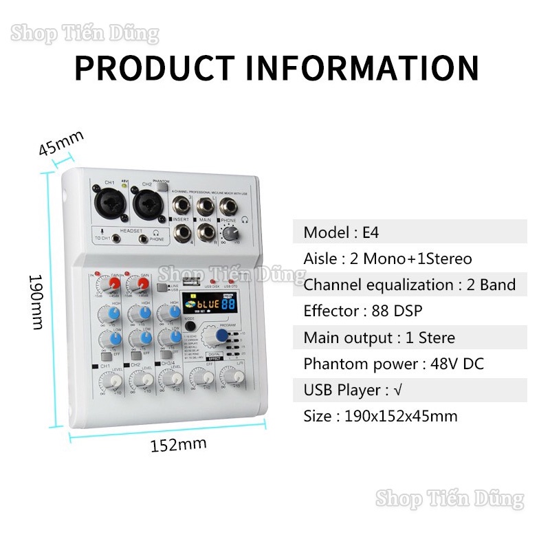 ✔️ Thông số kỹ thuật Mixer E4: