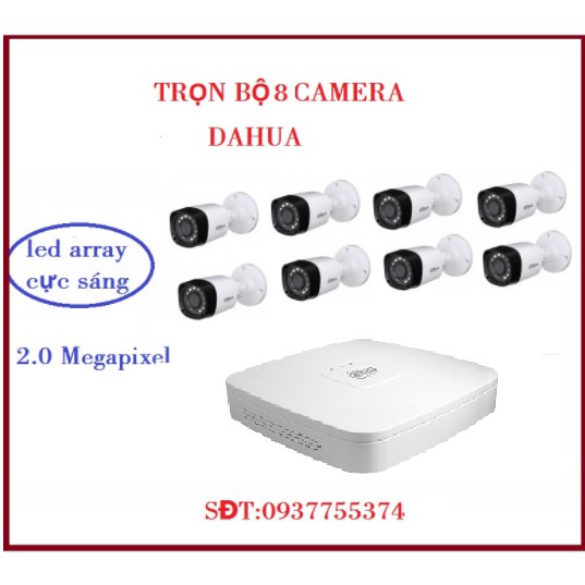 Trọn bộ 08 camera quan sát 2.0 mepixel dahua