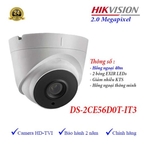 ✎2 Camera DS-2CE56D0T-IT3 Hikvision - Full HD 2.0 Megapixel, hồng ngoại 40m