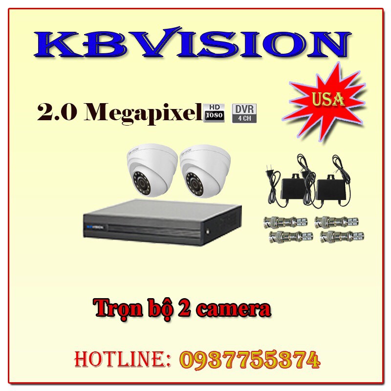 Trọn bộ 2 camera KBVISION HD siêu nét thích hợp lắp cho gia đình, văn phòng, nhà xưỡng, shopping....Trọn bộ bao gồm :