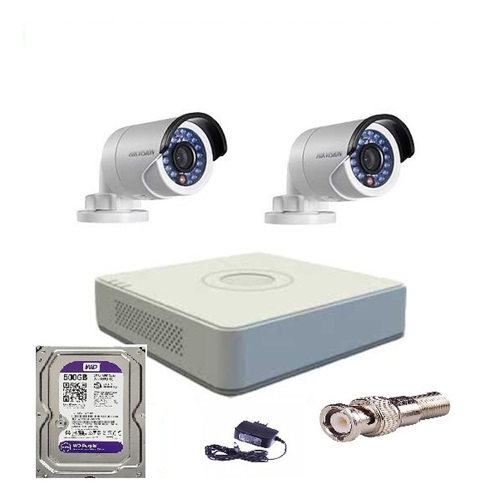 Trọn bộ 2 Camera Hikvision DS-2CE16C0T-IR và đầu ghi DS-7104HGHI-F1 - HDD 500GB