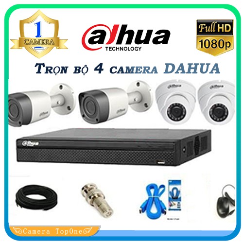 Trọn bộ 4 camera DAHUA chính hãng Full HD 1080p + ổ cứng HDD 500G đi kèm dây tùy chọn