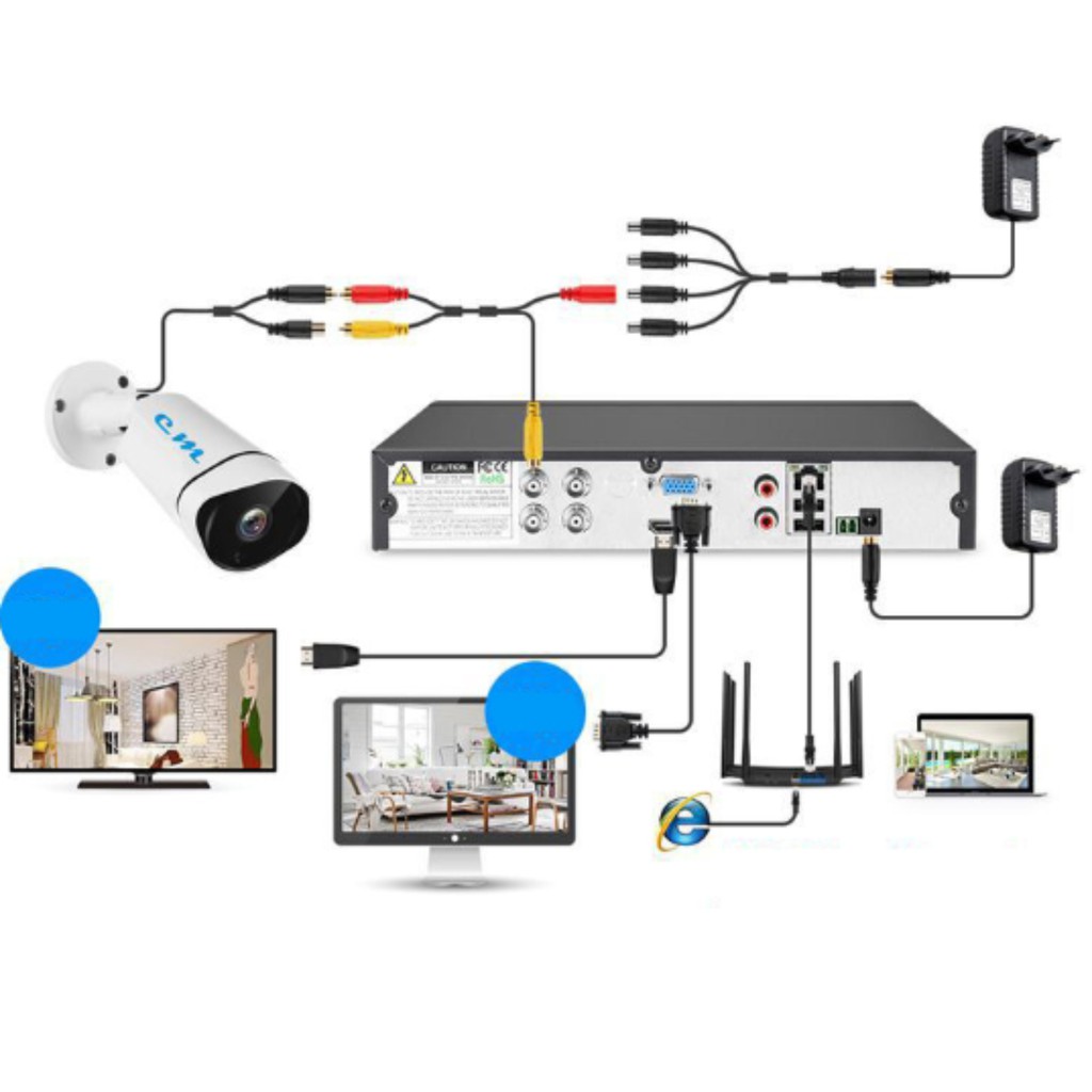 Giới thiệu Trọn Bộ 4 Camera DVR Giám Sát Trong Nhà 2MP Dây 20 Mét- App điều khiển từ xa (Không HDD)
