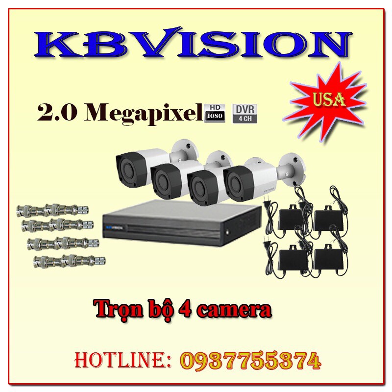 Trọn bộ 4 camera KBVISION HD siêu nét thích hợp lắp cho gia đình, văn phòng, nhà xưỡng, shopping....Trọn bộ bao gồm :