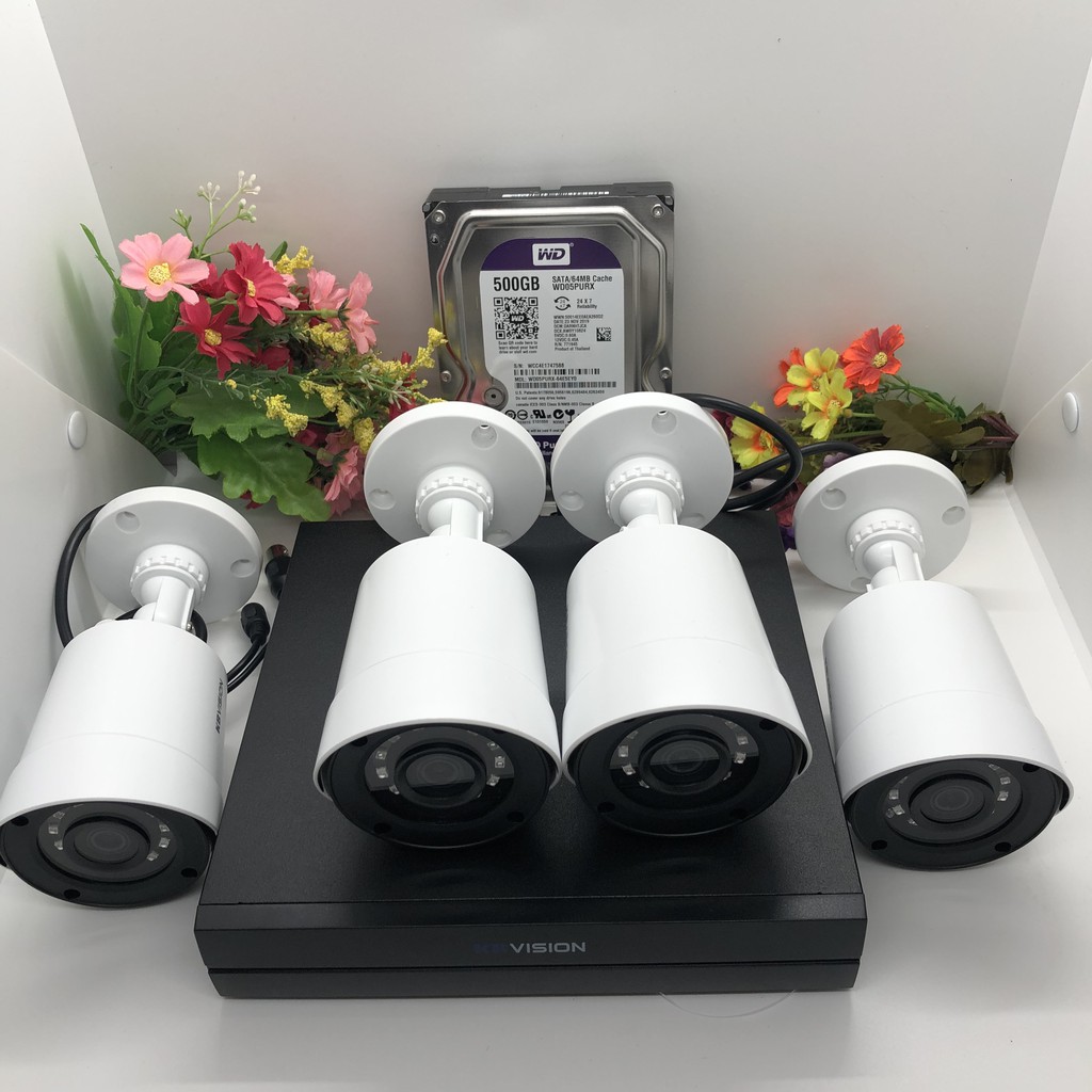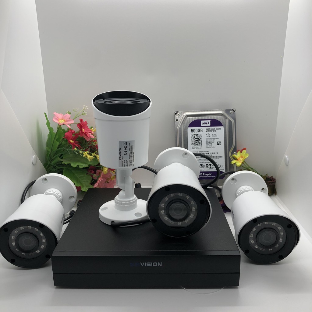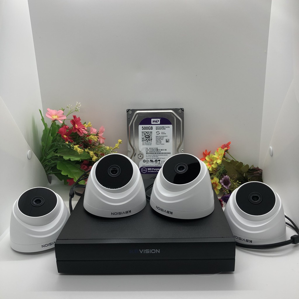 Trọn Bộ 4 Mắt 2.0 KB-VISION Đâu 7114SD6 - 04 Mắt camera 2.0 mã KX-2111CD4 Hoặc KX-2112CD4 - 01 Hdd 500g Westent Tím