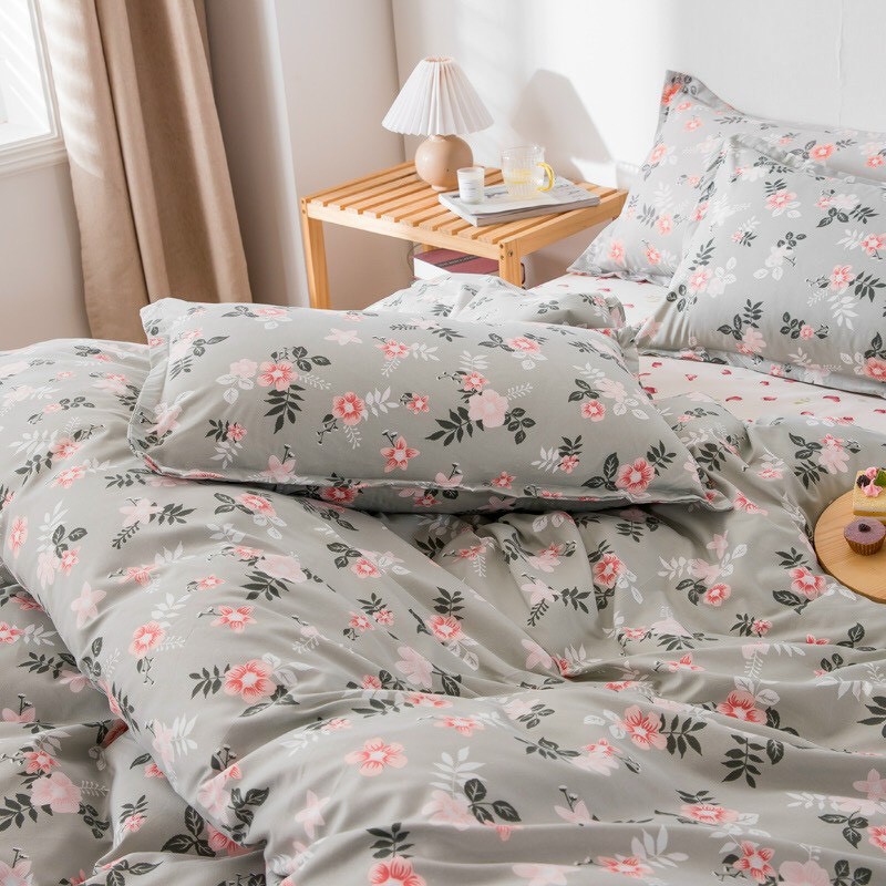 Trọn Bộ 4 Món Chăn Ga Gối Cotton Poly Nhập Mẫu HOA CÚC NỀN BẠC (đủ kích thước)