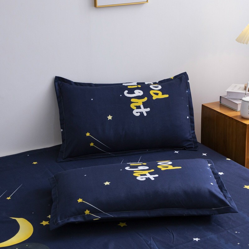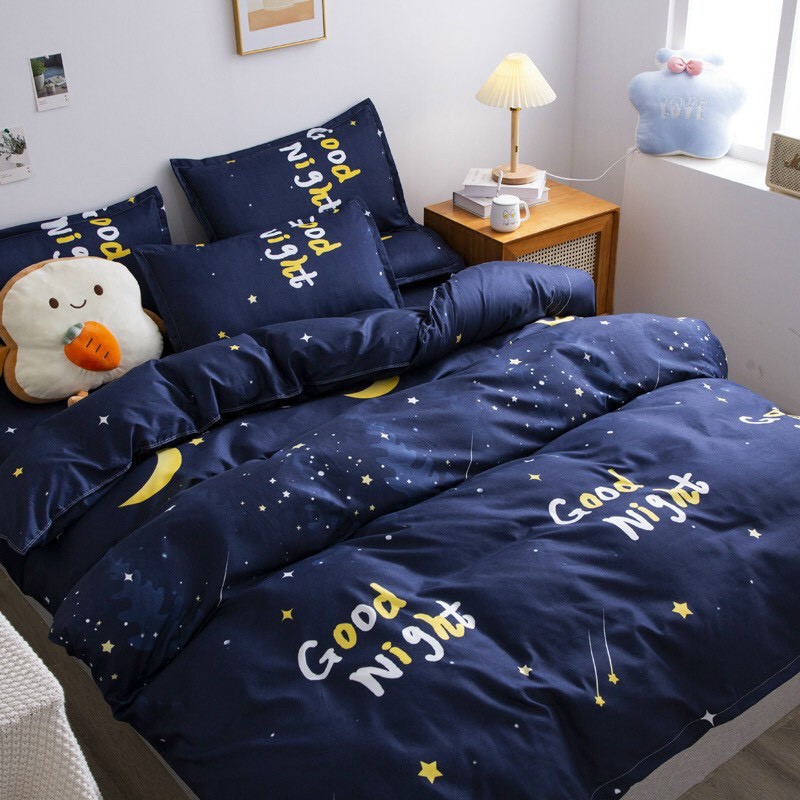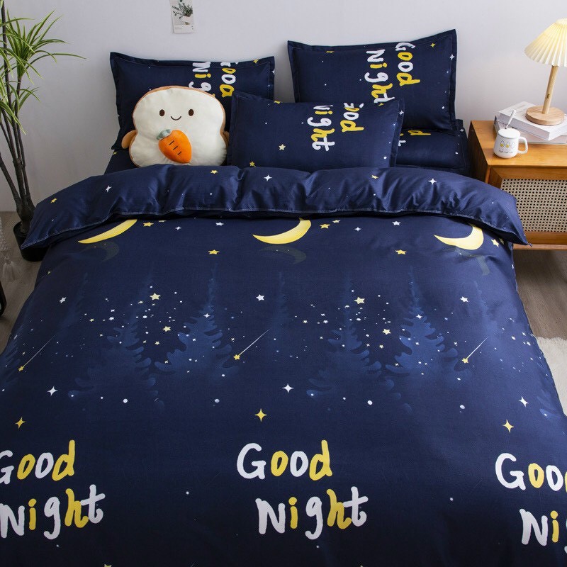 Trọn Bộ 4 Món Chăn Ga Gối Cotton Poly Nhập Mẫu MẶT TRĂNG GOODNIGHT Dành Cho Gia Đình Bạn( đủ kích thước)