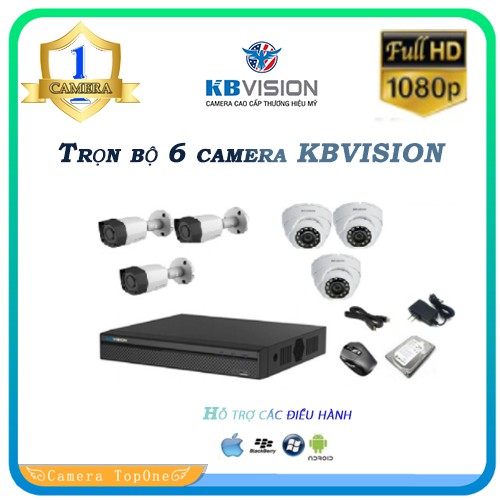 ✅Trọn bộ 6 camera KBVISION Full HD 1080p kèm HDD 1TB : Camera Thân hồng ngoại quan sát ngày và đêm. LED ARRAY siêu sáng. Với độ phân giải 2.0 Megapixel cho hình ảnh cực kì sắc nét và chất lượng ổn định.✅Bộ sản phẩm bao gồm: